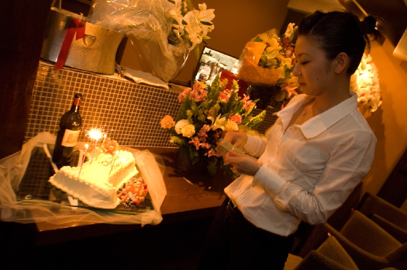 仕方がないな、と愚痴をこぼしながら、一周年のお祝いにと、松原さんにシガー用のカッターとパンチを贈ります。ほどなく、集まり始めるFaustたち。あ る人は、艶やかなアレンジメントフラワー、ある人はヒュミドールとシガー、ある人は白ワイン……Faustたちのプレゼントで、自然とパーティの演出が 整っていきます。