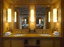 3方を窓に囲まれ、270度の景色が楽しめるのはアッパーデッキ後方のメインキャビン(ゲストルーム)。甲板には大きな専用テラスが広がり、太陽と海を心行くまで独り占めできるようにデザインされている。セカンドキャビンとサードキャビンもあり、いずれも、エアコン、バスルーム、シャワー、トイレ、ワードローブを完備。白、ハニー、ベージュで統一された部屋に流れる隠遁とした静かな時間は、隠れ家リゾートの代名詞を誇るアマンリゾーツならではの、上質な作りといえるだろう。