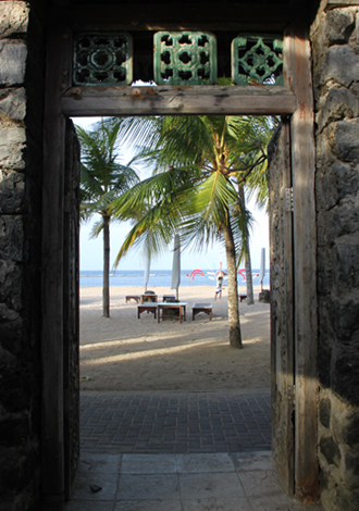 タンジュンサリの門からサヌールビーチを見る。